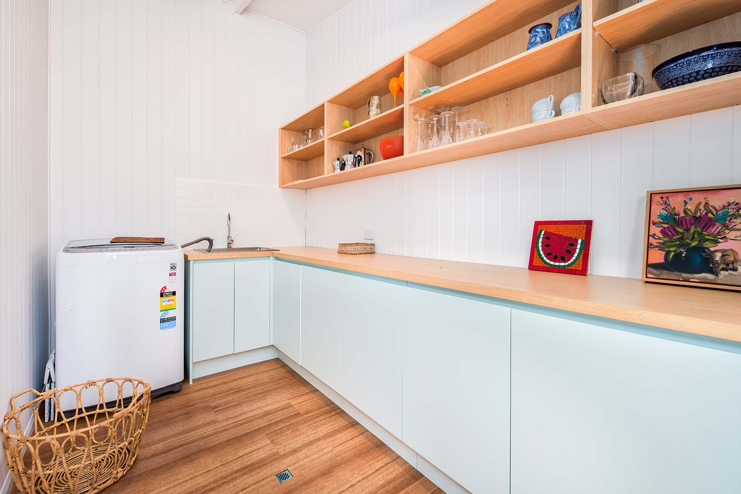 Take a break, escape. And that’s what the family had in mind when they settled on a waterfront block on the peaceful South Stradbroke Island. South Straddie is remote, with no vehicle barges, no cars, limited accommodation and even fewer tradesmen. So it was no easy feat to pull together a project facing a lot of upfront challenges. Nonetheless, the finished product speaks for itself. It’s open, it’s roomy, and it feels like a home away from home.